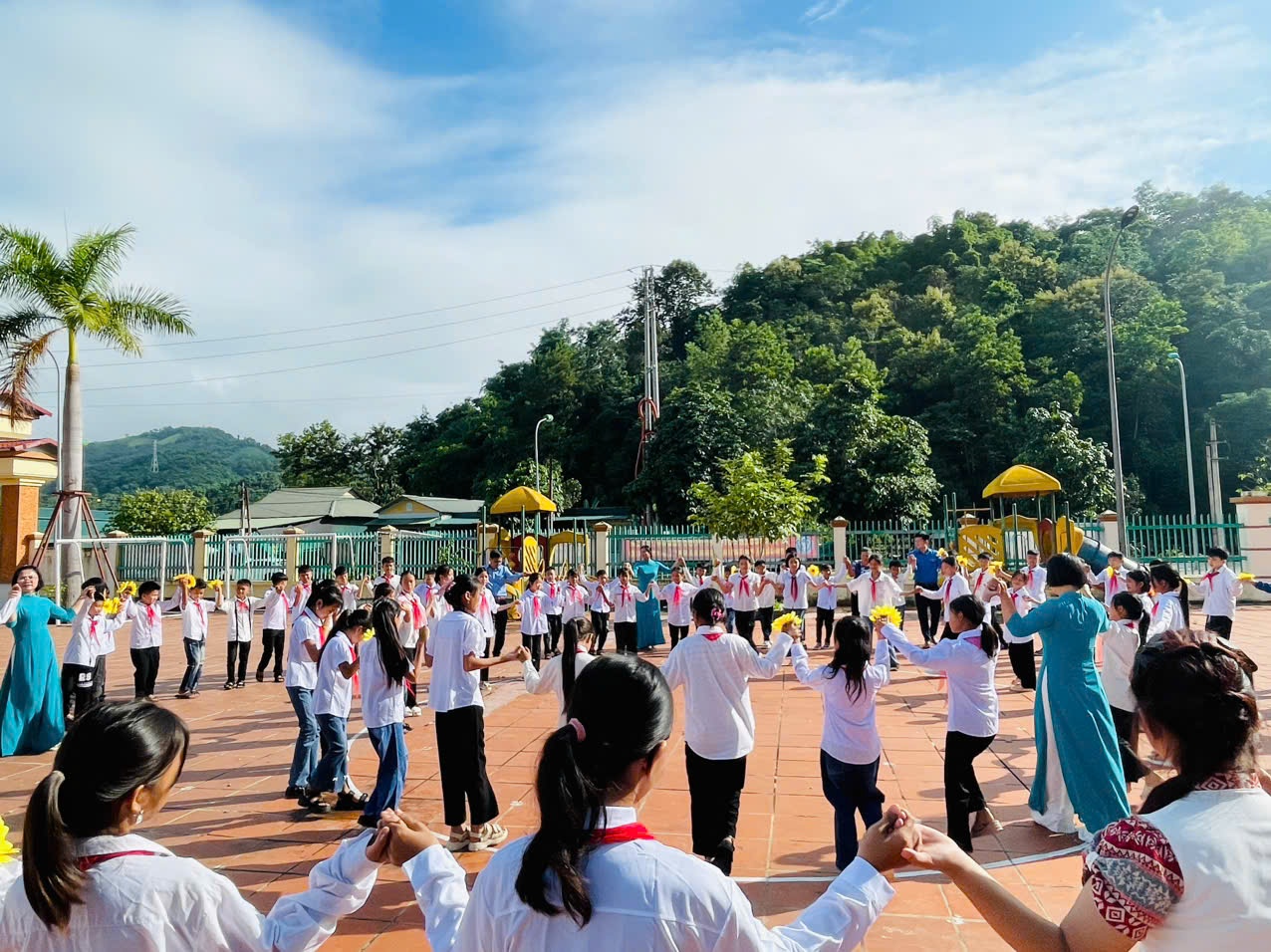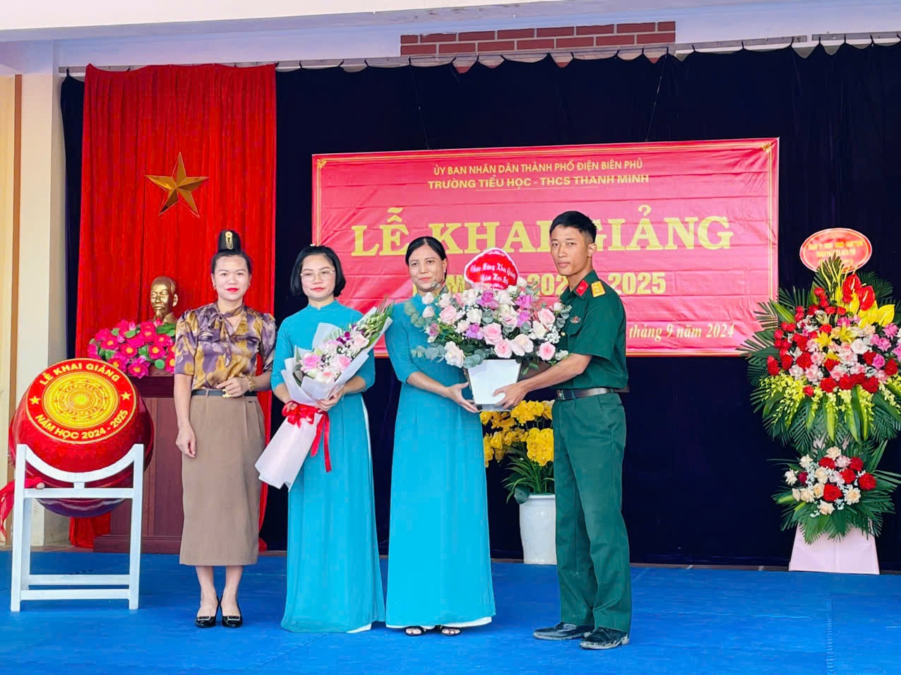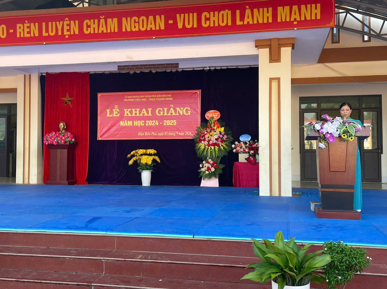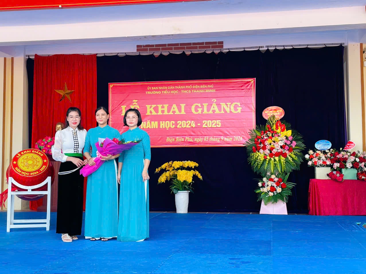 Trong không khí của những ngày thu lịch sử, cả nước hân hoan chào mừng kỷ niệm 79 năm Quốc khánh nước CHXHCNVN (2/9/1945 - 02/9/2024), hòa chung với khí thế tưng bừng, náo nhiệt của tuổi trẻ học đường, cả nước chào đón năm học mới. Ngày 05/09/2024, trường TH-THCS Thanh Minh long trọng tổ chức Lễ khai giảng năm học mới: 2024-2025. Đến dự lễ khai giảng của nhà trường có đồng chí Nguyễn Quốc Tân - Ủy viên BCH Đảng Bộ thành phố, Bí thư Đảng ủy xã Thanh Minh; đồng chí Lò Thị Hà Phó chủ tịch UBND xã và các đoàn thể xã Thanh Minh; các đồng chí thuộc đơn vị kết nghĩa; đại diện ngân hàng Viettinbank; Ban đại diện cha mẹ học sinh và hơn 380 em học sinh trong toàn trường. Tại lễ khai giảng đồng chí Nguyễn Quốc Tân - Ủy viên BCH Đảng Bộ thành phố, Bí thư Đảng ủy xã Thanh Minh đã đọc thư của Chủ tịch nước Tô Lâm gửi ngành Giáo dục nhân dịp khai giảng năm học mới 2024-2025. Năm học 2023 – 2024, nhà trường đã hoàn thành tốt nhiệm vụ năm học, có thành tích trong thực hiện nhiệm vụ, được UBND Thành phố tặng giấy khen. Phát huy những thành tích đạt được, trong năm học 2024-2025 với chủ đề: “Đoàn kết, kỷ cương, trách nhiệm, đổi mới sáng tạo, nâng cao chất lượng giáo dục và đào tạo” tập thể cán bộ giáo viên, nhân viên và các em học sinh trường TH - THCS Thanh Minh quyết tâm triển khai nghiêm túc nhiệm vụ năm học và các văn bản, chỉ thị của các cấp, các ngành, hoàn thành tốt nhiệm vụ năm học. Các em học sinh khó khăn trong nhà trường luôn nhận được sự quan tâm, động viên của các nhà hảo tâm, các đơn vị tài trợ khích lệ tinh thần hiếu học và tiếp thêm động lực cho học sinh khó khăn trên con đường đến trường. Tiếng trống trường đã vang lên rộn rã hứa hẹn một năm học với những thành công mới, những thách thức mới cùng một quyết tâm hoàn thành xuất sắc nhiệm vụ năm học. Lễ khai giảng năm học mới 2024 – 2025 diễn ra trong bầu không khí trang nghiêm nhưng cũng không kém phần vui tươi, phấn khởi. Với điệu xòe đoàn kết, thân ái kết nối các vị đại biểu, thầy giáo, cô giáo và các em học sinh trong toàn trường đã khép lại một Lễ khai giảng thành công, hứa hẹn một năm học mới nhiều thắng lợi mới./.