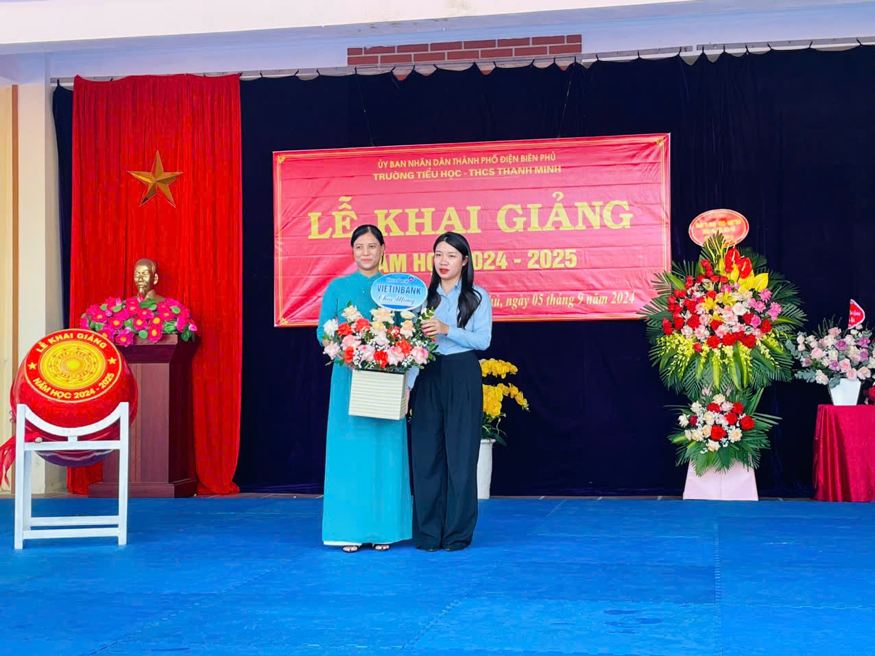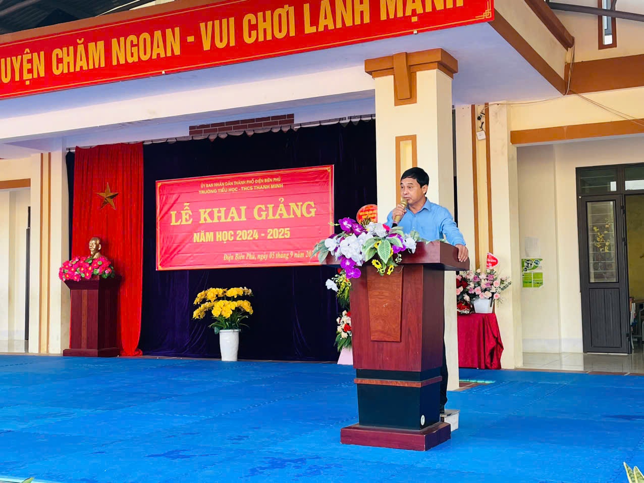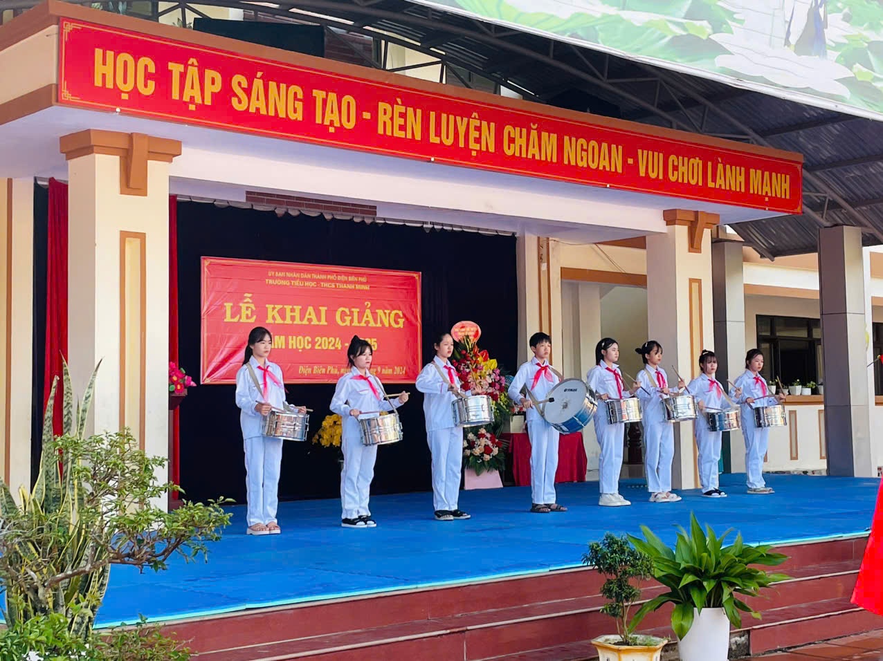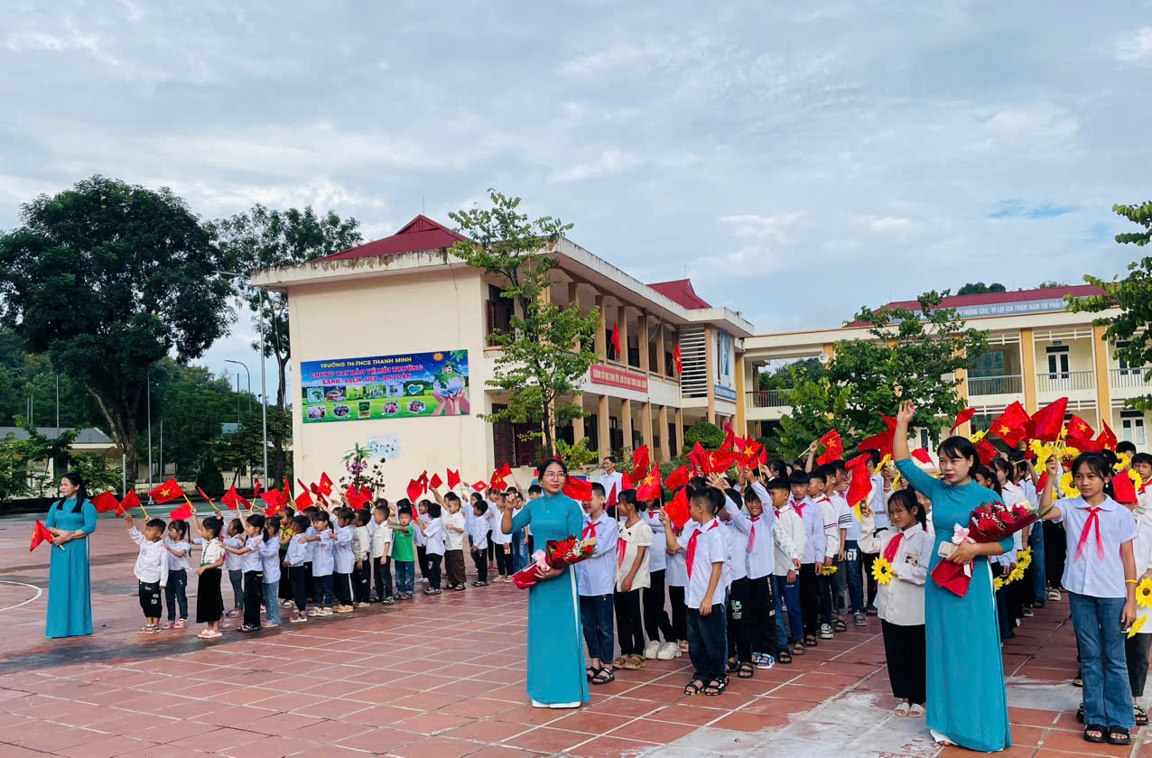 Trong không khí của những ngày thu lịch sử, cả nước hân hoan chào mừng kỷ niệm 79 năm Quốc khánh nước CHXHCNVN (2/9/1945 - 02/9/2024), hòa chung với khí thế tưng bừng, náo nhiệt của tuổi trẻ học đường, cả nước chào đón năm học mới. Ngày 05/09/2024, trường TH-THCS Thanh Minh long trọng tổ chức Lễ khai giảng năm học mới: 2024-2025. Đến dự lễ khai giảng của nhà trường có đồng chí Nguyễn Quốc Tân - Ủy viên BCH Đảng Bộ thành phố, Bí thư Đảng ủy xã Thanh Minh; đồng chí Lò Thị Hà Phó chủ tịch UBND xã và các đoàn thể xã Thanh Minh; các đồng chí thuộc đơn vị kết nghĩa; đại diện ngân hàng Viettinbank; Ban đại diện cha mẹ học sinh và hơn 380 em học sinh trong toàn trường. Tại lễ khai giảng đồng chí Nguyễn Quốc Tân - Ủy viên BCH Đảng Bộ thành phố, Bí thư Đảng ủy xã Thanh Minh đã đọc thư của Chủ tịch nước Tô Lâm gửi ngành Giáo dục nhân dịp khai giảng năm học mới 2024-2025. Năm học 2023 – 2024, nhà trường đã hoàn thành tốt nhiệm vụ năm học, có thành tích trong thực hiện nhiệm vụ, được UBND Thành phố tặng giấy khen. Phát huy những thành tích đạt được, trong năm học 2024-2025 với chủ đề: “Đoàn kết, kỷ cương, trách nhiệm, đổi mới sáng tạo, nâng cao chất lượng giáo dục và đào tạo” tập thể cán bộ giáo viên, nhân viên và các em học sinh trường TH - THCS Thanh Minh quyết tâm triển khai nghiêm túc nhiệm vụ năm học và các văn bản, chỉ thị của các cấp, các ngành, hoàn thành tốt nhiệm vụ năm học. Các em học sinh khó khăn trong nhà trường luôn nhận được sự quan tâm, động viên của các nhà hảo tâm, các đơn vị tài trợ khích lệ tinh thần hiếu học và tiếp thêm động lực cho học sinh khó khăn trên con đường đến trường. Tiếng trống trường đã vang lên rộn rã hứa hẹn một năm học với những thành công mới, những thách thức mới cùng một quyết tâm hoàn thành xuất sắc nhiệm vụ năm học. Lễ khai giảng năm học mới 2024 – 2025 diễn ra trong bầu không khí trang nghiêm nhưng cũng không kém phần vui tươi, phấn khởi. Với điệu xòe đoàn kết, thân ái kết nối các vị đại biểu, thầy giáo, cô giáo và các em học sinh trong toàn trường đã khép lại một Lễ khai giảng thành công, hứa hẹn một năm học mới nhiều thắng lợi mới./.